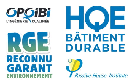 Notre bureau est qualifié OPQIBI, RGE, HQE et Passive House (Maison Passive), et nous intervenons sur des projets en neuf, en rénovation énergétique globale ou dans le cadre du Décret Tertiaire.